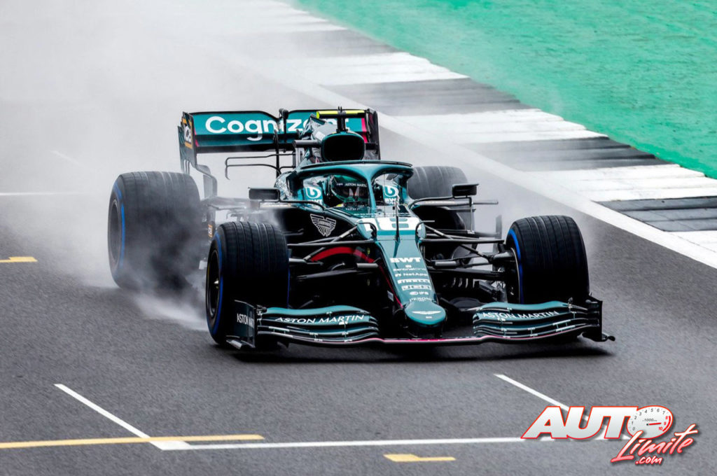 Lance Stroll, al volante del Aston Martin AMR21, durante las primeras pruebas realizadas con el monoplaza en el circuito de Silverstone en la jornada de filmación ("filming day").