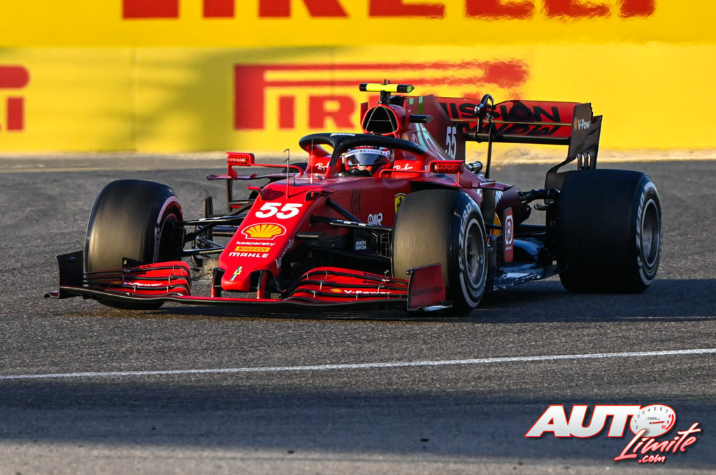 Carlos Sainz Jr, al volante del Ferrari SF21, durante los test de pretemporada realizados en el Circuito Sakhir de Barhéin.