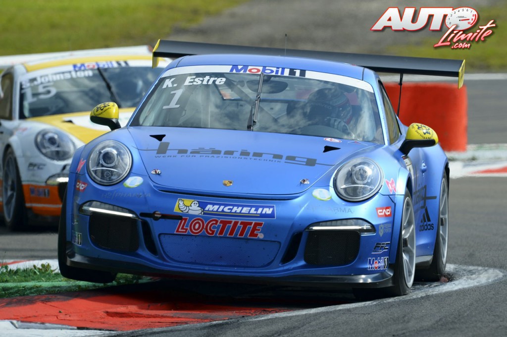Kevin Estre al volante de su Porsche 911 GT3 Cup durante la prueba de la Porsche Supercup 2013 disputada en el circuito de Nürburgring (Alemania).