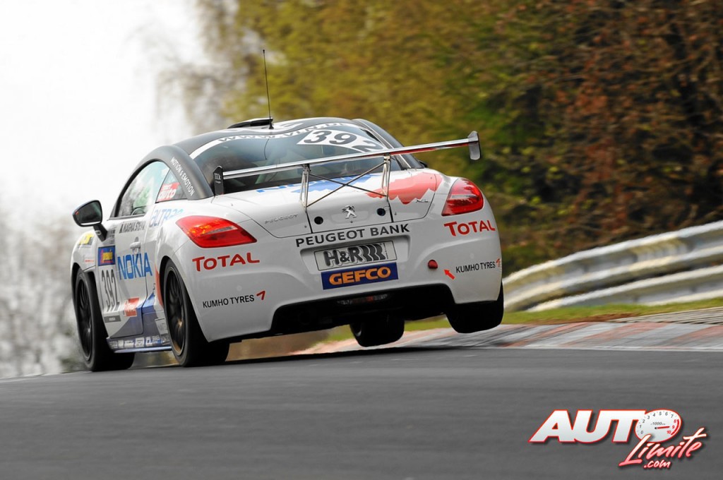 Julien Piguet, Guillaume Roman, Julien Rueflin y Paul Englert con el Peugeot RCZ, durante la segunda carrera del Campeonato Alemán de Resistencia "VLN" 2012, disputada en el circuito de Nürburgring.