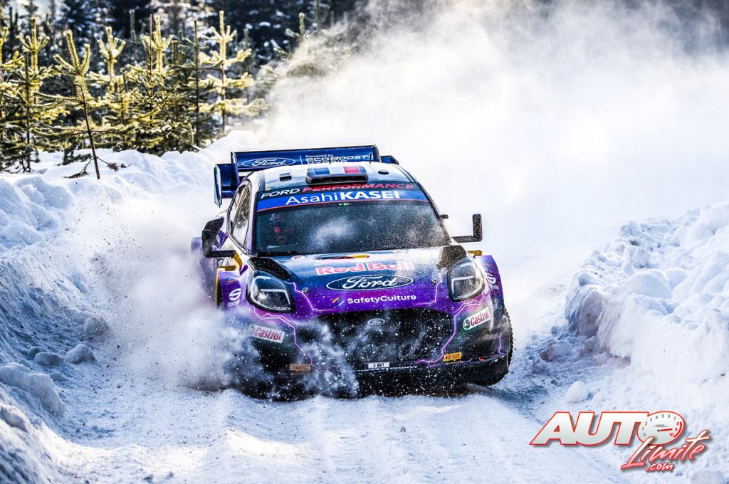 Adrien Fourmaux, al volante del Ford Puma Rally1 WRC, durante el Rally de Suecia 2022, puntuable para el Campeonato del Mundo de Rallies WRC.