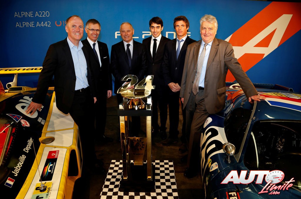De izquierda a derecha: Philippe Sinault (Signatech), Carlos Tavares (Renault), Didier Calmels (Signatech), Pierre Ragues (Piloto), Nelson Panciatici (Piloto) y Bernard Ollivier (Alpine-Caterham).