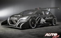 Así pues, han partido sobre la “imagen” del Peugeot 208 para desarrollar un ligero coche silueta con chasis tubular, carrocería de fibra de carbono, motor centrado por delante del eje trasero, tracción a las cuatro ruedas y los elementos aerodinámicos necesarios para volar en la denominada “Carrera hacia las nubes” (lleva el mismo alerón trasero utilizado por el Peugeot 908 ganador de Le Mans).