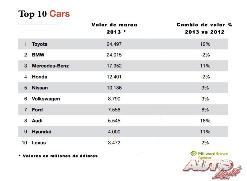 El valor de las marcas de automóviles