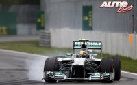 Hasta hace un par de Grandes Premios, al equipo Mercedes le ocurría lo contrario, su coche era muy rápido en calificación pero aguantaba malamente en carrera a causa de la excesiva degradación de los neumáticos.