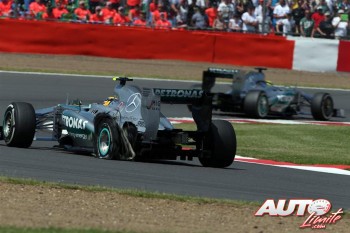 Entre tanto, Rosberg aguantaba las embestidas de Webber, ese guerrero australiano que se quería despedir del público británico demostrando su garra, pero finalmente era el alemán el que cruzaba primero bajo la bandera de cuadros. Alonso finalizaba en la tercera posición, aunque acosado por el Mercedes de un Hamilton que renacía de sus cenizas y ajusticiaba también a Räikkönen antes de llegar a meta.