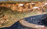 Encuadrado dentro de la categoría “Unlimited” (“sin limitación), Loeb fue el primer participante en realizar la subida y exprimía a fondo los 875 CV de su prototipo silueta a lo largo de este tramo con 20 kilómetros de recorrido y un total de 156 curvas, completando el ascenso hasta la cota 4.300 a una impresionante media de 140,8 km/h.