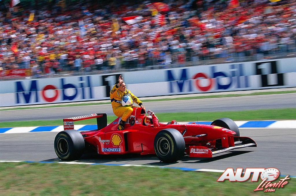 Al finalizar el GP de Alemania de 1997, disputado en el circuito de Hockenheim, Giancarlo Fisichella volvió a boxes montado sobre el Ferrari F310B de Michael Schumacher. El piloto italiano había sufrido una avería en su monoplaza Jordan-Peugeot 197 a cinco vueltas de la bandera de cuadros.