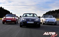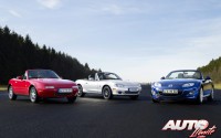 La segunda generación del MX-5 se estrenaba en 1998, con motores 1.6 16V de 110 CV y 1.8 16V de 140 CV, mientras que la tercera generación llegaba al mercado en 2005 con motores 1.8 16V de 128 CV y 2.0 16V con 160 CV de potencia.