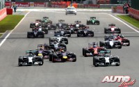 En la salida, Lewis Hamilton (Mercedes) sorprendía a su compañero y máximo rival, Nico Rosberg, e intentaba marcharse de su alcance mientras éste intentaba defenderse del ataque impartido por el Vettel más agresivo de la temporada.