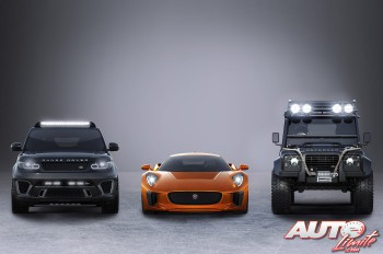 Además de Aston Martin y Jaguar, la marca Land Rover se sumará también a las escenas de acción sobre ruedas, con un imponente Land Rover Range Rover Sport SVR de 550 CV y un descomunal Land Rover Defender “Big Foot” con enormes neumáticos todo terreno de 37 pulgadas de diámetro (94 centímetros) y suspensiones sobre elevadas, ambos desarrollados y modificados expresamente para la película por los especialistas de Land Rover Special Operations, la división de la marca encargada de la fabricación de vehículos especiales.