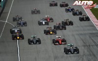 Emocionante, por imprevista, ha sido la pelea de gallos en los primeros lugares de la parrilla de salida, la aparición del “Safety Car” en la segunda vuelta y las decisiones tácticas de los “pit stop” en cada formación, que situaron al Ferrari de Sebastian Vettel en primera posición desde el sexto giro, seguido por Nico Hulkenberg (Force India), Romain Grosjean (Lotus), Carlos Sainz (con el Toro Rosso desde la décimo quinta posición de salida) y Sergio Pérez (Force India).