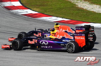 Pero, este GP de Malasia 2015, no solo ha sido grande para la Fórmula 1 por el triunfo de Sebastian Vettel y Ferrari. También hemos podido asistir y disfrutar de una pugna constante entre el resto de los coches de la parrilla, descartados para la batalla los McLaren-Honda de Fernando Alonso y Jenson Button, junto al lentísimo Manor de Roberto Mehri (en su debut en Fórmula 1).