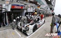– En total, los tres Porsche 919 Hybrid estuvieron 95 minutos y 36 segundos en el “pit”. El tiempo del segundo mejor equipo con tres coches inscritos superó los 130 minutos.