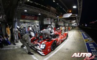 – Casi no se tuvieron que cambiar piezas durante la carrera. Después de salirse de la pista, al coche número 18 se le puso un morro nuevo en dos ocasiones. En el prototipo número 19, a las ocho de la mañana, el equipo cambio, por precaución, la cubierta del motor y el alerón trasero, y lo hizo cuando esto no suponía ninguna pérdida de tiempo, al estar el coche de seguridad en pista.