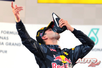 A falta del brillante charol de un zapato de la exuberante Anita Ekberg, un botín ignífugo, sudado tras dos horas de carrera, no parece la mejor copa para el champagne de los campeones. Sin embargo, los compañeros de podio de este GP de Malasia 2016, apuraron el trago que les ofrecía el “aussie”, como si no hubiera mañana. Todos bebieron de la bota su ración del elixir de la gloria, porque todos tenían motivos para ello.