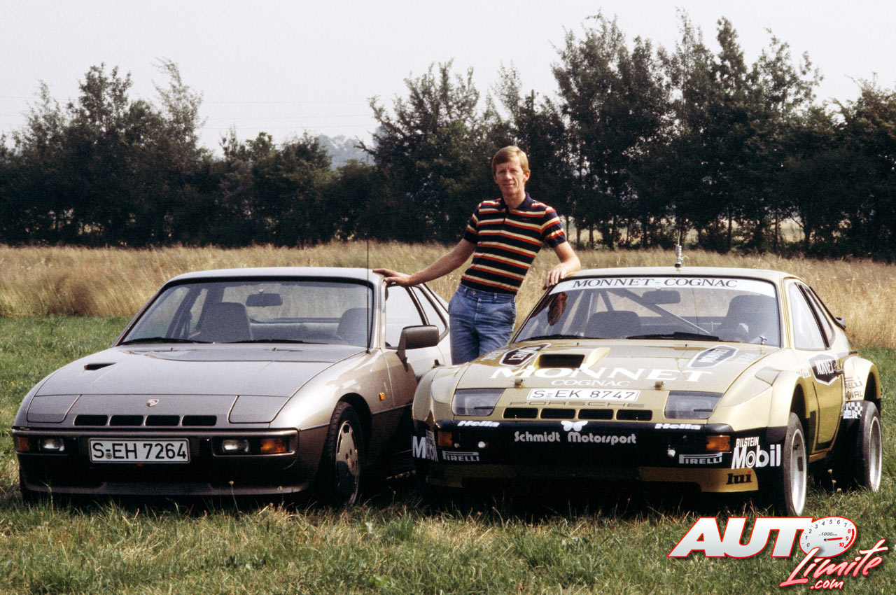 Walter Röhrl entre el Porsche 924 Turbo de calle y el Porsche 924 Carrera GTS de carreras en 1981.