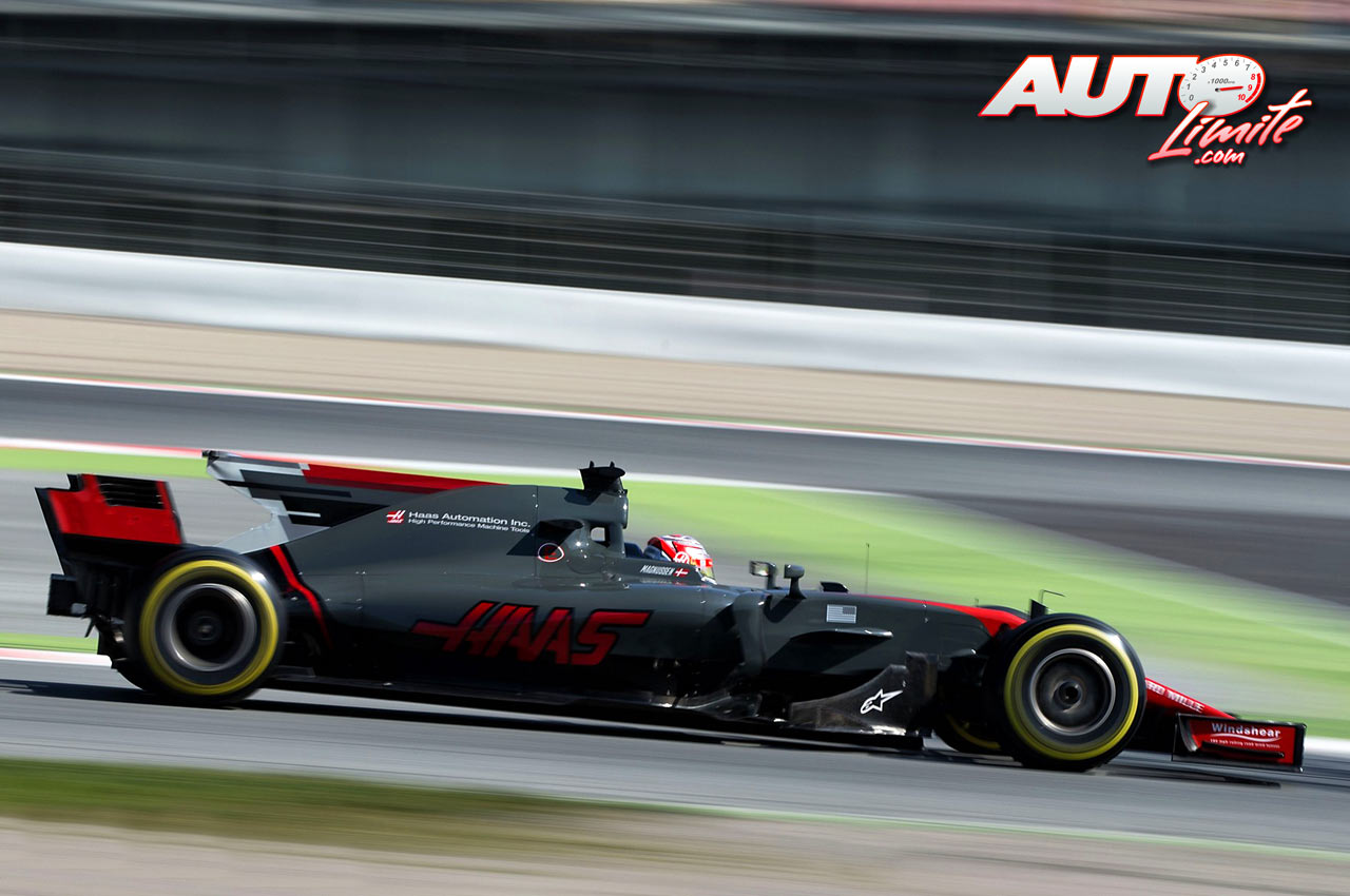 Kevin Magnussen, al volante del Haas-Ferrari VF-17, durante los entrenamientos de pretemporada disputados en el Circuito de Montmeló.