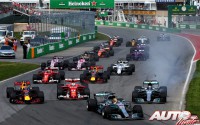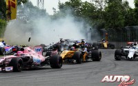 No se había cubierto la primera de las 70 vueltas cuando hacía su aparición el “Safety Car”, tras la carambola a tres bandas iniciada en la llegada a la tercera curva. Carlos Sainz Jr (Toro Rosso) perdía el control de su monoplaza al ser tocado por Romain Grosjean (Haas) y el piloto español se llevaba por delante a Felipe Massa (Williams), quedando Sainz y Massa fuera de carrera (al finalizar la prueba, Sainz era penalizado con tres posiciones de parrilla en el próximo Gran Premio, al ocasionar una situación de peligro).
