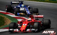 Sebastian Vettel le acosaba y su Ferrari SF70H se mostraba cerca y grande en los retrovisores del piloto finlandés, aprovechando la aparición de “blistering” en los neumáticos de su rival.