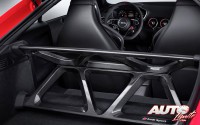 Además, los Audi TT pueden montar un nuevo arco de refuerzo situado en la parte trasera. Dicho arco está fabricado en plástico reforzado con fibra de carbono y elimina los dos pequeños asientos posteriores (reduce el peso 20 kg), incrementando aún más la rigidez estructural de este coupé.