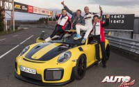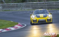 Sobre los 20,6 kilómetros del anillo norte de Nürburgring, el Porsche 911 GT2 RS ha sido capaz de rodar a una velocidad media de 182,1 km/h, para detener el cronómetro en 6 m 47,3 segundos, marca que quedó acreditada por un notario y en la que participaron los principales efectivos técnicos de la marca alemana.