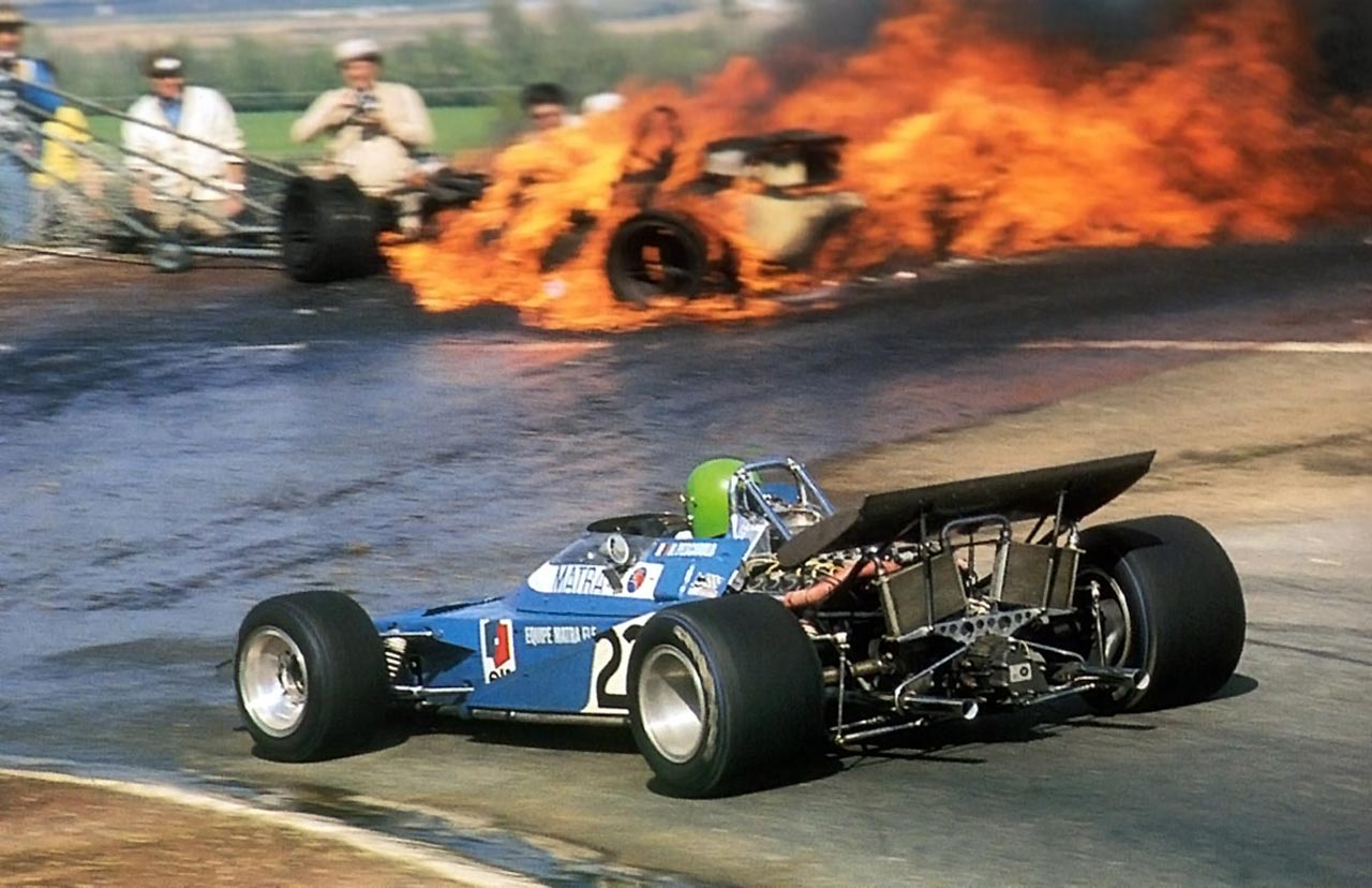 Tengo en mi retina la escena dantesca y los vivos colores, porque yo estaba allí, viéndolo con mis propios ojos, del accidente seguido de incendio de Jacky Ickx y de Jackie Oliver en el Gran Premio del Jarama de 1970.