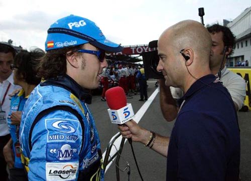 Y en 2004, con el fenómeno “Alonso” en pleno auge, llegó Telecinco (que ya tuvo una desafortunada primera experiencia en la emisión de los Grandes Premios a mediados de los 90). Al frente de las retransmisiones continuaba Gonzalo Serrano (posterior inventor en 2007 de un celestial “San Ganchao”) y se estrenaba un poco conocido Antonio Lobato.