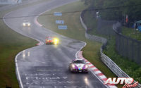 Las condiciones meteorológicas se iban complicando cada vez más y la niebla se hacía tan densa sobre las curvas del Nürburgring que dirección de carrera decidía detener la prueba a 3,5 horas de finalizar la carrera.