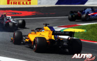 Cuenta, como único armamento, el poder montar en su monoplaza el nuevo “MGU-K” de Renault, el compuesto a elegir de sus neumáticos y un alerón delantero de la temporada anterior, al haberse dañado severamente el suyo en la “qualy”, saltando sobre las “bananas” del “Red Bull Ring” a la búsqueda de esas décimas que de forma recurrente le niega la geometría de su McLaren MCL33.
