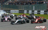 Al apagarse los cinco semáforos rojos, los expectantes aficionados hemos vivido la emoción de comprobar como el Ferrari de Sebastian Vettel conseguía adelantar al Mercedes de Lewis Hamilton en la recta de “Kemmel”, tras una apurada de frenada “a cuatro” en la que participaban muy agresivos los dos Force India, llegando el de Esteban Ocon a un paso de colocarse líder, antes de abortar el intento (para no poner en riesgo a los dos principales aspirantes a la victoria) y ser adelantado por su compañero Sergio Pérez.