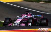 La segunda fila de parrilla la iban a ocupar Sebastian Ocon y Sergio Pérez, que aprovechaban magistralmente el chaparrón para situar los monoplazas de su renacido y rebautizado equipo “Racing Point Force India F1” en lugares poco habituales para los “bólidos rosa”.