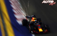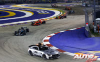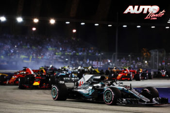 Con miles de focos iluminando el asfalto de Marina Bay, los cinco semáforos rojos se apagaban para dar comienzo a la carrera y Lewis Hamilton (Mercedes) mantenía con maestría su primera posición, al mismo tiempo que Sebastian Vettel (Ferrari) atacaba con furia el segundo puesto de Max Verstappen (Red Bull), que aguantaba el envite inicial pero debía ceder en la siguiente apurada de frenada.