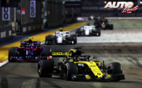 Por detrás, Sergio Pérez (Force India) arrinconaba a Esteban Ocon (Force India) contra el muro, dejando a su compañero con el monoplaza destrozado en medio de la pista y obligando al “Safety Car” a entrar en acción, cumpliendo un año más el pleno de apariciones en esta ruleta urbana que es el GP de Singapur.