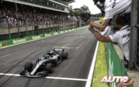 Lewis Hamilton (Mercedes), abrazado agradecido a la máquina que le llevó a conquistar su quinto título y a ganar el GP de Brasil 2018, le ha devuelto a la marca de la estrella el honor de coronarse, una vez más, como vencedora del Campeonato de Constructores de la Fórmula 1.