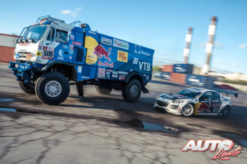 Y, en esta nueva ocasión, Red Bull ha enfrentado al rabioso Mazda RX-8 de “Mad Mike” Whiddett con el poderoso KAMAZ 4326 de Eduard Nikolaev, en un espectáculo de potencia y “drifting” sobre la Factoria Kírov de San Petersburgo (Rusia).