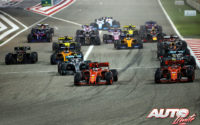 En el momento crucial de la salida quedaba demostrada que la veteranía es un grado y la rápida reacción de Sebastian Vettel (Ferrari) fulminaba los escasos metros de ventaja que tenía Charles Leclerc (Ferrari), robando limpiamente la posición a su compañero, que arrancaba lento y se veía superado también por la “Flecha de plata” de Valtteri Bottas (Mercedes) y seriamente amenazado por Lewis Hamilton (Mercedes).