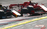 En la vuelta 68, Verstappen adelantaba a Leclerc por el interior en la frenada de la curva 2, pero Charles volvía a recuperar la primera posición en la salida, al aprovechar la mejor tracción que tenía por la línea exterior.