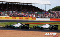 Sin embargo, en los siguientes giros ya se había desatado la batalla y las dos “Flechas de plata” intercambiaban posiciones por unos instantes en una limpia disputa durante la vuelta 4. Lewis Hamilton (Mercedes) le ganaba la delantera a Valtteri Bottas (Mercedes) a la salida de “Luffield”, liderato que volvía a recuperar el finlandés en la entrada a la rapidísima curva de “Copse” (que hacían a una velocidad cercana a los 300 km/h).