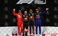 Pocas veces hemos podido ver tan exultantes a los tres integrantes del podio: Verstappen por haber ganado la carrera (el Dr. Helmut Marko prometió la pasada temporada cinco victorias con los nuevos motores Honda y ya van dos), Vettel por protagonizar tan imponente remontada y Kvyat por reencontrarse con el podio en su regreso a la Fórmula 1.