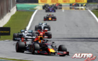 En el podio de Interlagos, dos “jóvenes leones” de la “escuela Red Bull” levantaban sus trofeos, tras once vueltas de locura que marcaron en final de una carrera digna de mantener en el recuerdo. Max Verstappen (Red Bull) como ganador de la prueba y Pierre Gasly (Toro Rosso) celebrando sobre el segundo escalón su primer podio en la Fórmula 1.