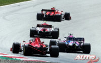 No ocurría lo mismo por detrás, donde el “Cavallino” de Charles Leclerc (Ferrari), potro joven y enfurecido, se desbocaba en la curva 3 (“Remus”), tratando de superar por un lugar imposible al otro “Cavallino” de Sebastian Vettel (Ferrari), caballo viejo y bregado que seguía su trayectoria y asestaba una “coz” implacable contra el atrevido compañero.