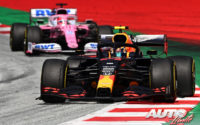 Sergio Pérez (Racing Point) se tocaba con Alexander Albon (Red Bull) intentándole arrebatar la cuarta posición, lance en el que dañaba su alerón delantero y le hacía perder mucho tiempo en la pista.