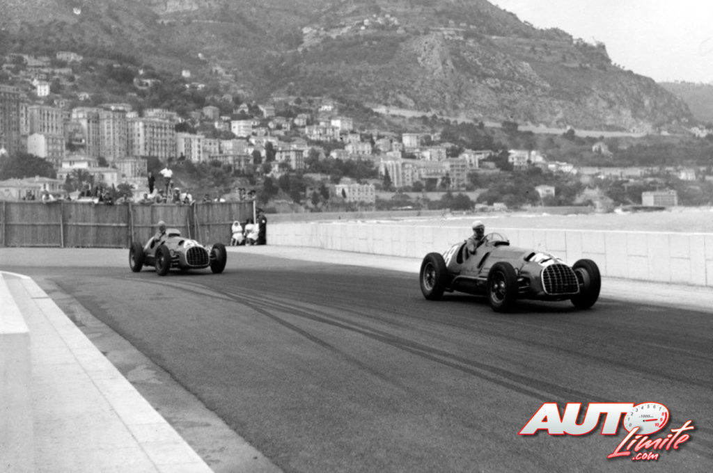 Luigi Villoresi (nº 38) y Alberto Ascari (nº 40), al volante de sendos Ferrari 125 F1, durante el GP de Mónaco de 1950, primera participación de la Scuderia Ferrari en el Campeonato del Mundo de Fórmula 1.