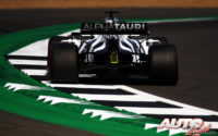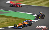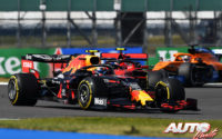 Con el asfalto a elevada temperatura, las rápidas curvas de Silverstone sometiendo a los monoplazas a fuertes apoyos y los neumáticos con los compuestos más blandos que la carrera anterior, era cuestión de pocas vueltas que empezara el “baile” de neumáticos, siendo Alex Albon (Red Bull) quien inauguraba la primera parada en “pit lane”en una temprana vuelta 6 (todos los “pit stops”).