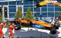 En semejante maniobra, Carlos Sainz Jr (McLaren) calculaba mal la velocidad y terminaba estrellando su monoplaza contra el muro, quedando desparramado en medio de la pista y fuera de carrera, un error que iba a costar al piloto español un nuevo “cero” en su ya vapuleada tabla de puntuación.