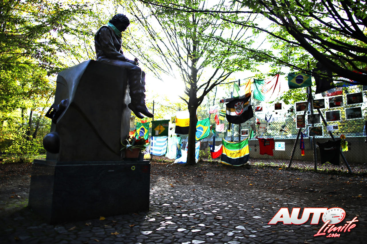 Estatua memorial de Ayrton Senna situada en la curva de Tamburello, el punto donde se mató el piloto brasileño durante el GP de San Marino 1994.