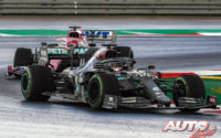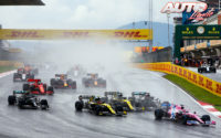 Así daba comienzo la carrera, con los dos Racing Point arrancando fulgurantes por la parte derecha de la parrilla y los dos Red Bull patinando en exceso por la parte izquierda de la misma, viendo cómo algunos de sus rivales les adelantaban mientras apenas conseguían avanzar los primeros metros.