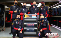 Con la segunda parada ya realizada (vuelta 30), Charles Leclerc (Ferrari) marcaba un ritmo vertiginoso sobre la pista y llegaba a colocarse en la tercera posición, tras superar a Stroll (Racing Point), a Vettel (Ferrari) y a Verstappen (Red Bull), que realizaba su tercer “pit stop” en la vuelta 43 y volvía a caer hasta la séptima posición de la carrera, siendo incapaz de regalar a su equipo un buen resultado en la celebración de su Gran Premio número 300.