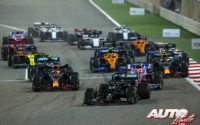 Con el piloto accidentado ya en lugar seguro (el Hospital de Manama al que un helicóptero le había evacuado), sin daños físicos importantes y la incógnita de si será éste su Gran Premio final en la Fórmula 1 (en Haas han confirmado ya la sustitución de sus dos pilotos para la temporada 2021), las defensas del circuito reparadas con bloques de cemento más robustos y los motores bramando, se retomaba la salida de una prueba en la que ya todo parecía casi secundario.